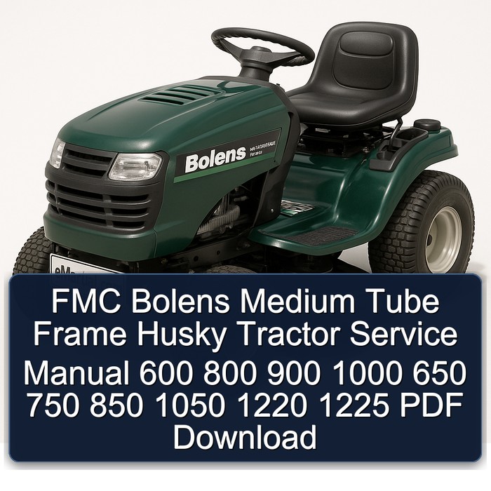 FMC Bolens Medium Tube Frame Husky Tractor Service Manual Models 600 800 900 1000 650 750 850 1050 1220 1225 This manual is a detailed file and it is illustrated with step-by-step instructions The manual is made in best quality. You can also print this manual from any computer and any printer. You can save it on every computer you want/need. Our manuals are in pdf format. Some manuals are zipped. This official service repair manual gives you complete step by step informations on repair, servicing and preventative maintenance. It is your help guide through every repair and troubleshooting proce...